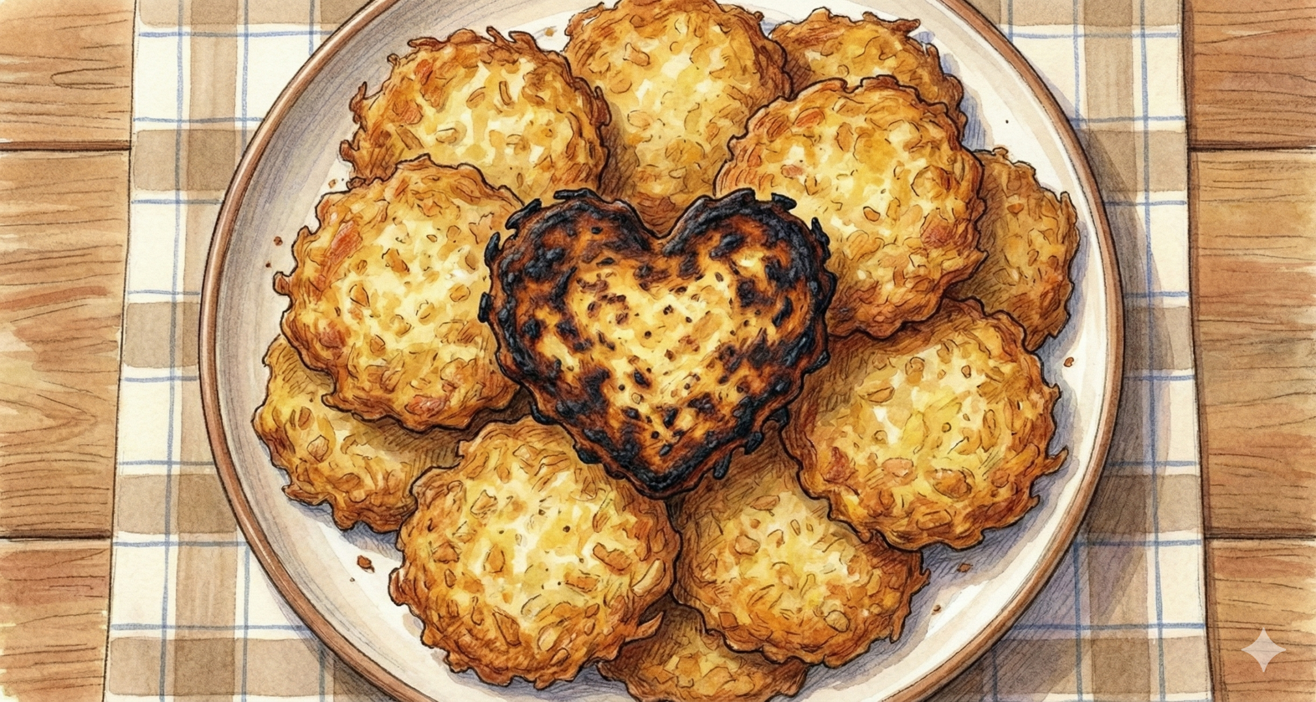 “לָמָּה אַתָּה תָּמִיד לוֹקֵחַ אֶת הַשָּׂרוּף? תִּרְאֶה,” הִצְבִּיעַ מֹשֶׁה עַל הַצַּלַּחַת, “יֵשׁ פֹּה לְבִיבוֹת יָפוֹת יוֹתֵר, זְהֻבּוֹת יוֹתֵר… בֶּטַח גַּם טְעִימוֹת יוֹתֵר. לָמָּה דַּוְקָא אֶת זוֹ?”